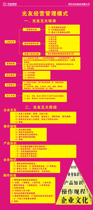 11.2000年,鄒光友創(chuàng)建《光友經(jīng)營(yíng)管理模式》,推動(dòng)光友薯業(yè)標(biāo)準(zhǔn)化管理,光友五大核心競(jìng)爭(zhēng)力“文化創(chuàng)新、管理創(chuàng)新、技術(shù)創(chuàng)新、營(yíng)銷(xiāo)創(chuàng)新、產(chǎn)業(yè)創(chuàng)新”開(kāi)始形成聚合力。